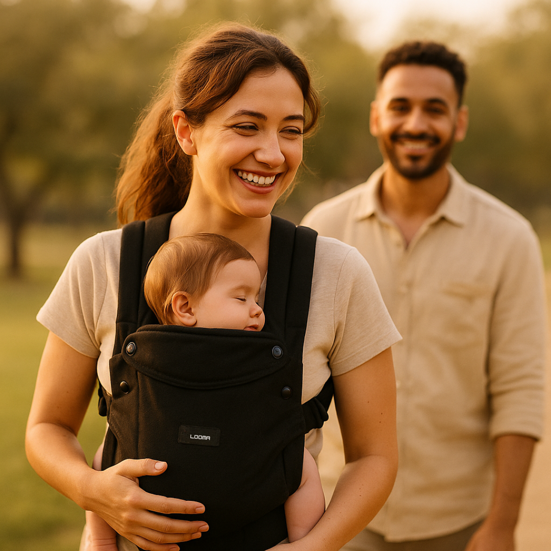 Looma vous accompagne dans tous les moments du quotidien — à la maison, en promenade ou en voyage. Léger, pratique et élégant, il vous libère les mains tout en gardant votre bébé tout près, bien installé contre vous.